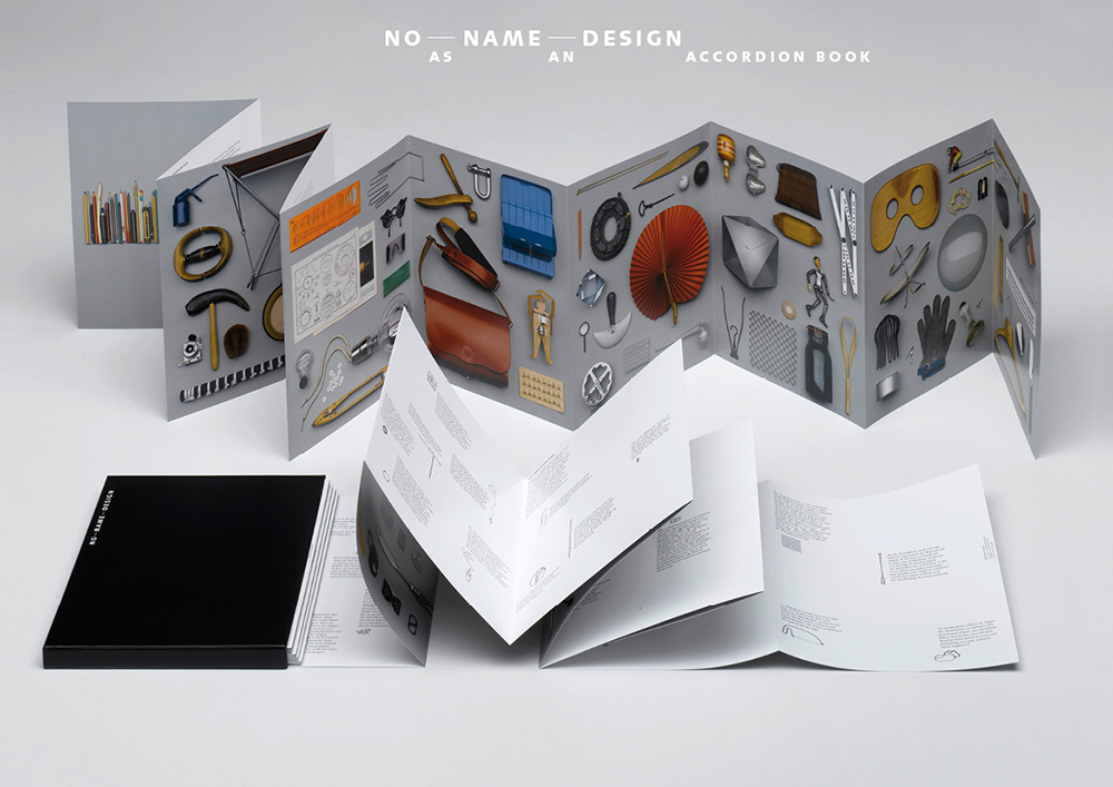 There are exhibitions one would love to take back home. When one is fascinated by things, and one would like to have them nearby in order to be able to look at them again and again. That is understandable in the case of the exhibition No Name Design. For it shows things to which one has a special relationship because one has already encountered them sometime and somewhere. Something that is otherwise almost inconceivable is possible with No Name Design. Hans Hansen interpreted the products exhibited in photographs, and Gottschalk+Ash International turned them into a compendium consisting of a slipcase with six according books measuring ca. 200 × 25 cm, for a total length of around twelve meters. Roughly a thousand objects are depicted, subdivided into twenty-nine themes; one hundred eighty of them are explained. Now the original thirtysix-meter exhibition will always be handy.